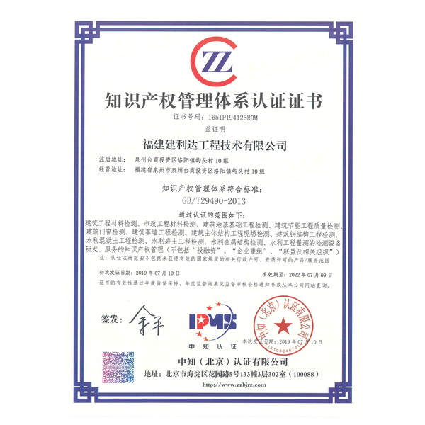 知識產權管理體系認證證書