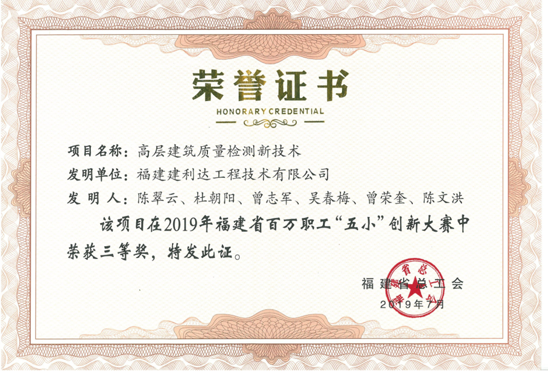 2019年福建省百萬職工“五小”創(chuàng)新大賽三等獲