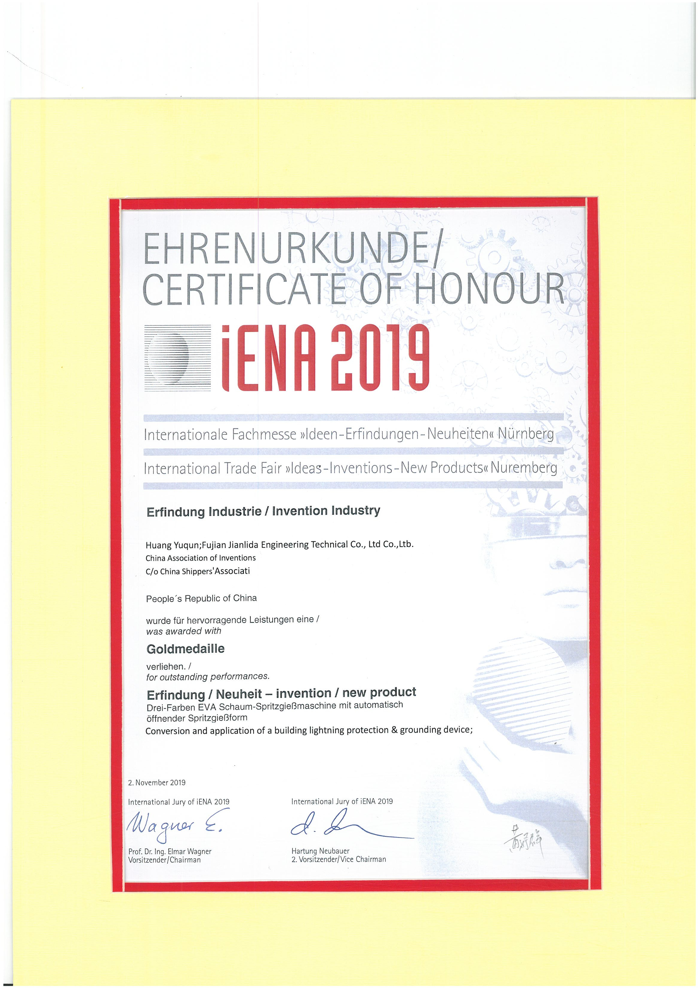 2019年德國紐倫堡發(fā)國際明展金獎(jiǎng)