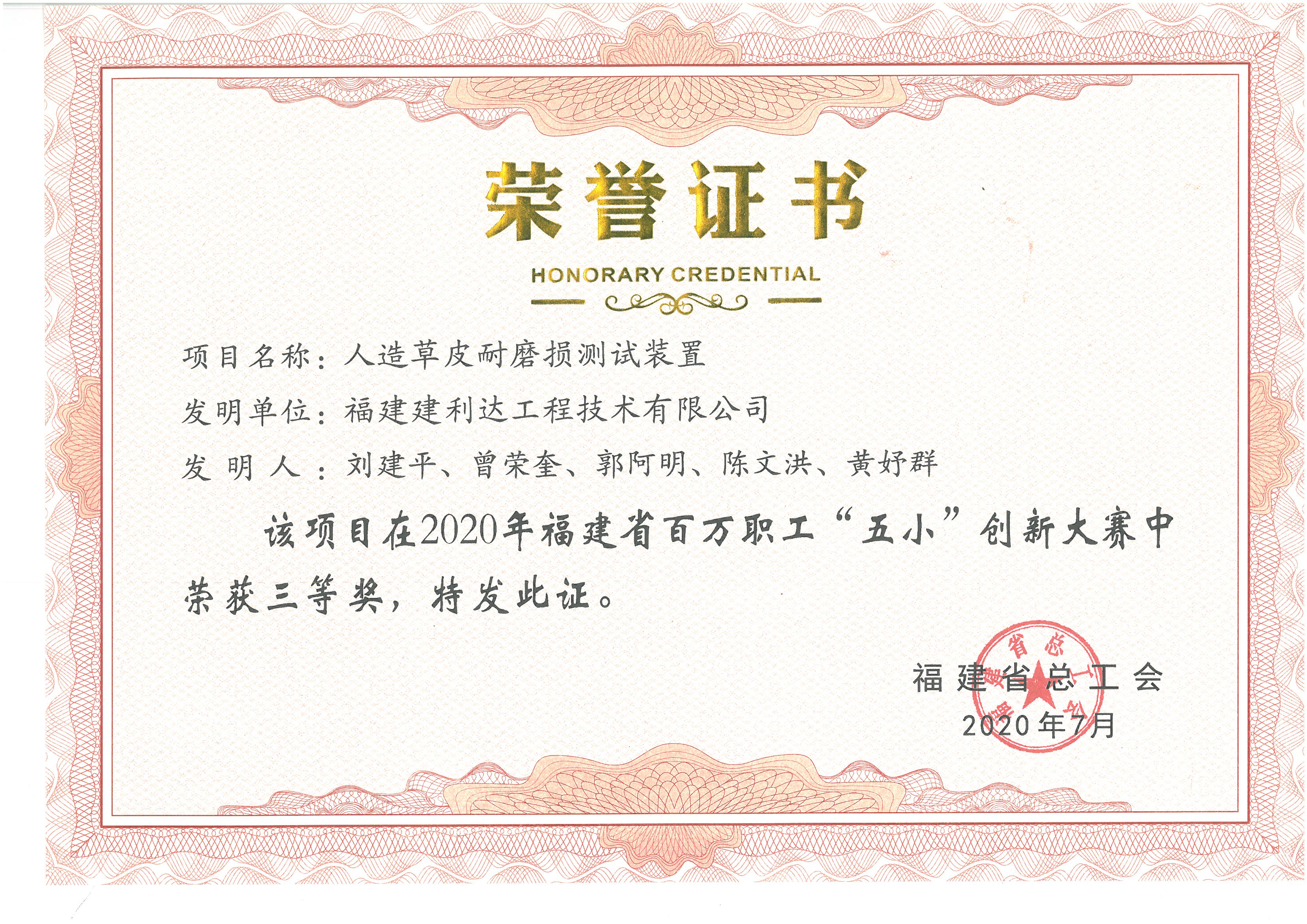 2020年五小創(chuàng)新三等獎(人造草皮耐磨損測試裝置)