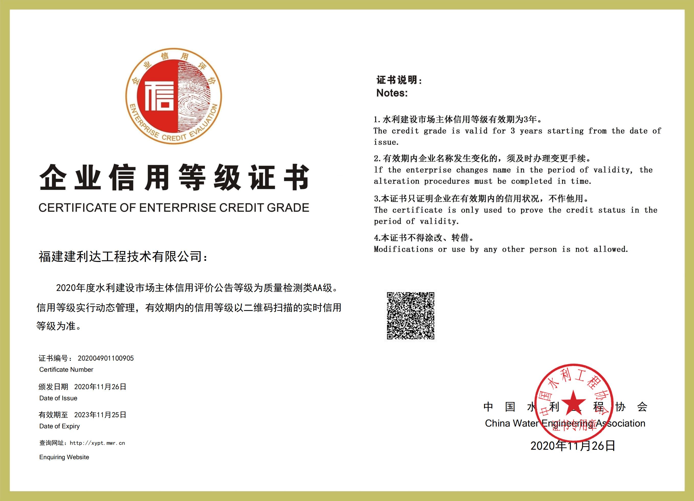 企業(yè)信用等級證書