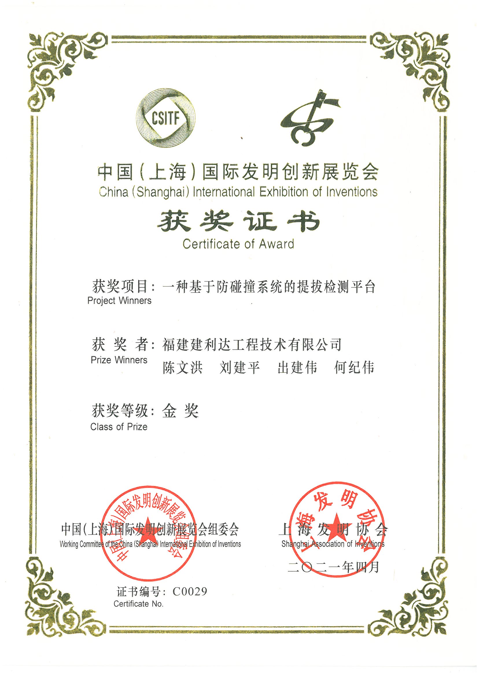 中國(上海)國際發(fā)明創(chuàng)新展覽會金獎-一種基于防碰撞系統(tǒng)的提拔檢測平臺